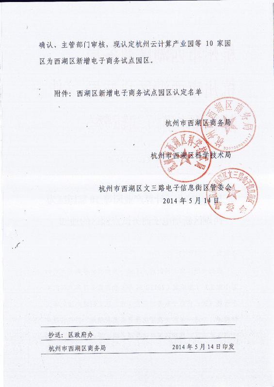 2014年5月14日,西湖區(qū)商務(wù)局、西湖區(qū)科技局和西湖區(qū)文三路電子信息街區(qū)管委會聯(lián)合發(fā)文,中大銀座入選西湖區(qū)新增電子商務(wù)園區(qū)。