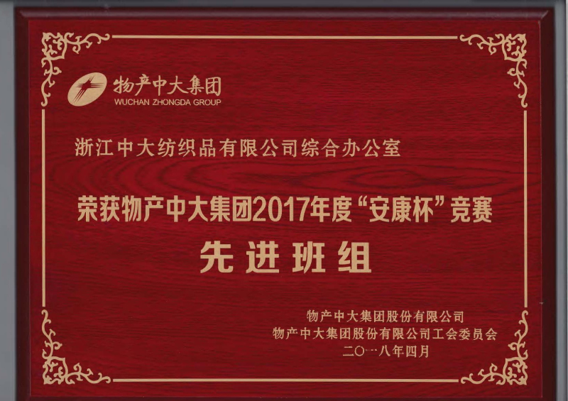 公司辦公室積極參與物產(chǎn)中大集團(tuán)和集團(tuán)工會舉辦的2017年度“安康杯”競賽,獲先進(jìn)班組稱號。